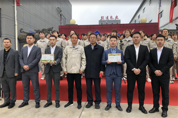 庆典最后,陕西省乳品安全生产协会副秘书长王伟民先生、那拉集团总经理解伟健先生、同陕西凯达乳业厂长段润利、陕西凯达乳业研发部主任魏剑飞、陕西凯达乳业营销总监贾晨及陕西凯达乳业全体员工合影留念!