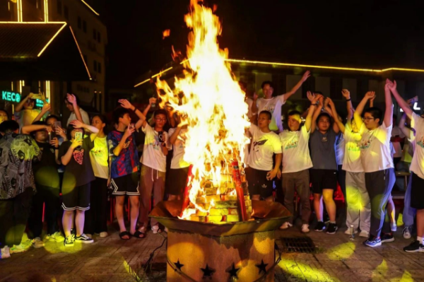 篝火盛宴,浪漫烟火 夜晚是一个旖旎的时刻,篝火替你们打上暧昧的灯光,烟火折射出心跳的节拍,仙女棒滋滋啦啦声响起的瞬间,是星光坠入手中,给予秋日最诚挚的祝福——你的生活要闪闪发亮呀!