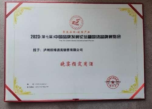 2023(第七届)中国品牌发展论坛暨国货品牌展览会,晚宴指定用酒证书!