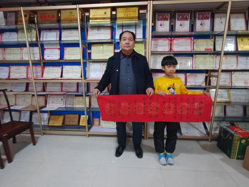 2日一大早,张力、王桂莲夫妇带着九岁的儿子张轩宁,由中国中央数字电视《法制与经济》栏目、中华时报山东站记者、中国文旅传媒网新闻记者、枣庄采访中心主任王海涛先生引荐,慕名专程从泰安市赶往金乡县李叔平先生的工作室,参加“五元人名币山水画作者、齐白石再传弟子李叔平收徒第二十一位弟子张轩宁仪式”。在欢乐热烈的友好气氛中,收徒拜师仪式隆重进行。来自山东枣庄中国书法家协会会员、国家一级美术师、中国匡衡书画院院长、枣庄大漠书画院院长、清华大学美术学院书法高级研修班特聘教授刘啸泉先生应邀主持了仪式。参加本次活动的有泰邦生物血浆站办公司主任李猛先生、韩为华先生,及来自全国的各地的新闻媒体、书画艺术家、企业家、文化学者共20余人。