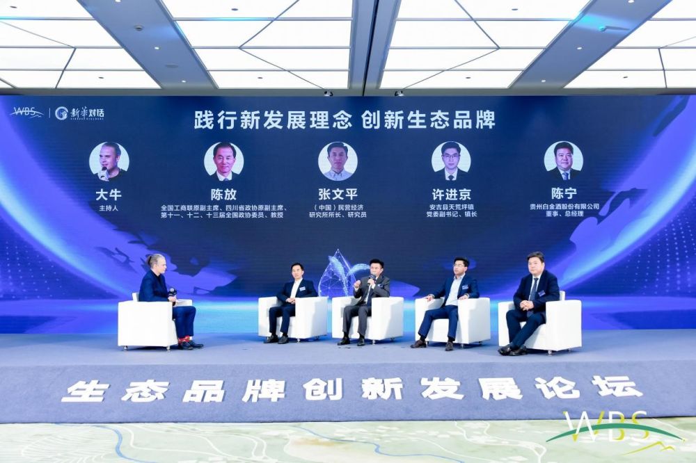 论坛中"新华对话"环节,以"践行新发展理念与创新生态品牌"为主题,邀请全国工商联原副主席、四川省政协原副主席、第十一、十二、十三届全国政协委员、教授陈放,贵州白金酒股份有限公司董事长陈宁,(中国)民营经济研究所所长、研究员张文平,浙江省湖州市安吉县天荒坪镇党委副书记、镇长许进京等专家学者、政商代表走上台前,通过对话、交流与碰撞,探索未来生态品牌发展方向。