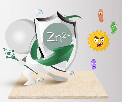 锌离子通过对细菌内蛋白质进行干扰破坏,在饰面状态下也能保持99.99%的抗菌效果。