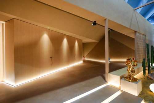 ZMKM工作人员介绍,此次品牌的“沙漠绿洲”主题展位,是借“沙漠”映射竞争激烈的大家居建材环境,以“绿洲”隐喻发展潜力巨大的极简门市场。